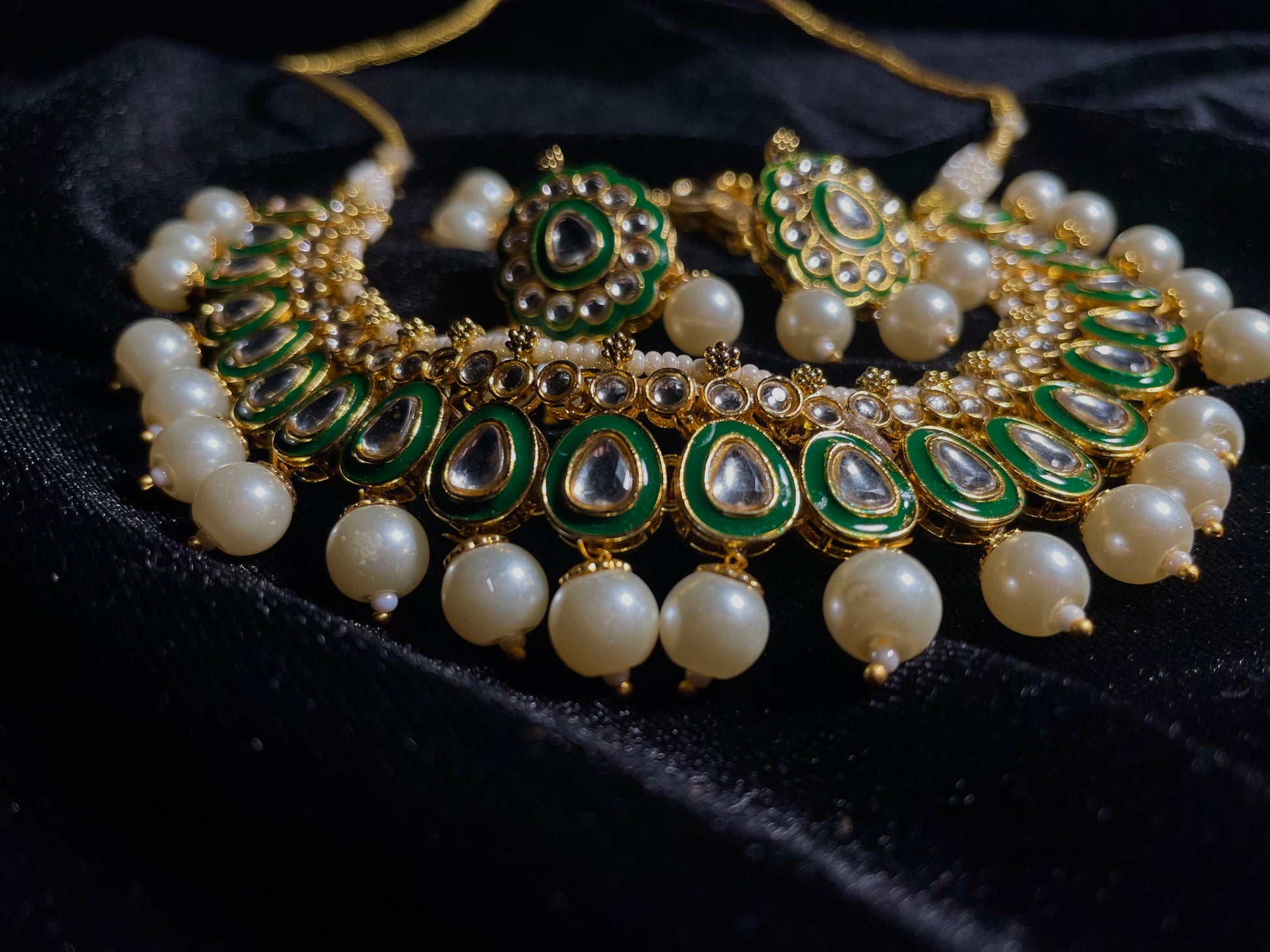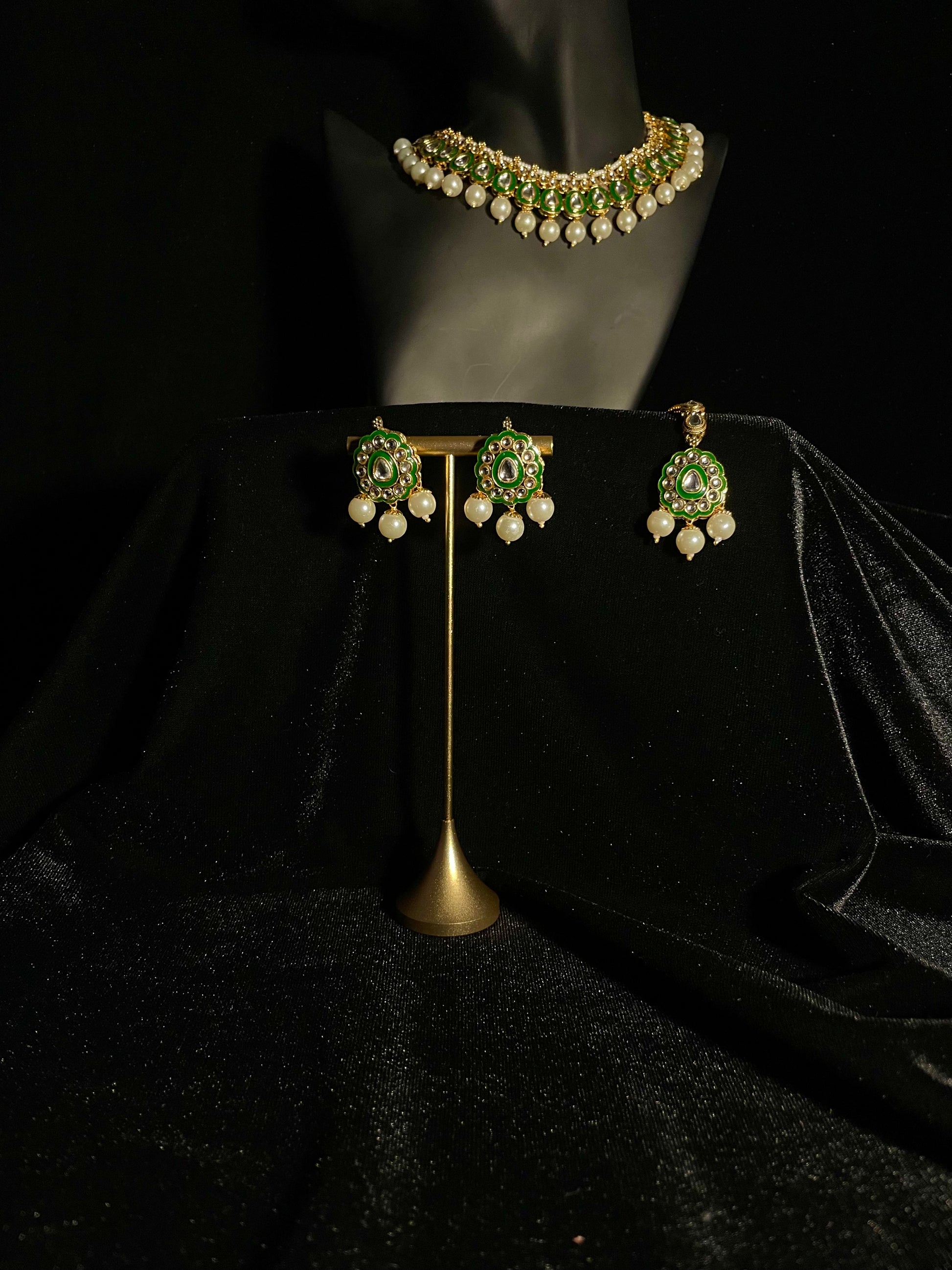 Our Darbar Jewels ll set offers you a simplified version of our beloved classic design. Featuring delicate white beads and thoughtfully crafted glass inlays, this set honors traditional artistry while embracing a more approachable, simplistic style. Perfect for those who appreciate heritage craftsmanship but prefer understated elegance.