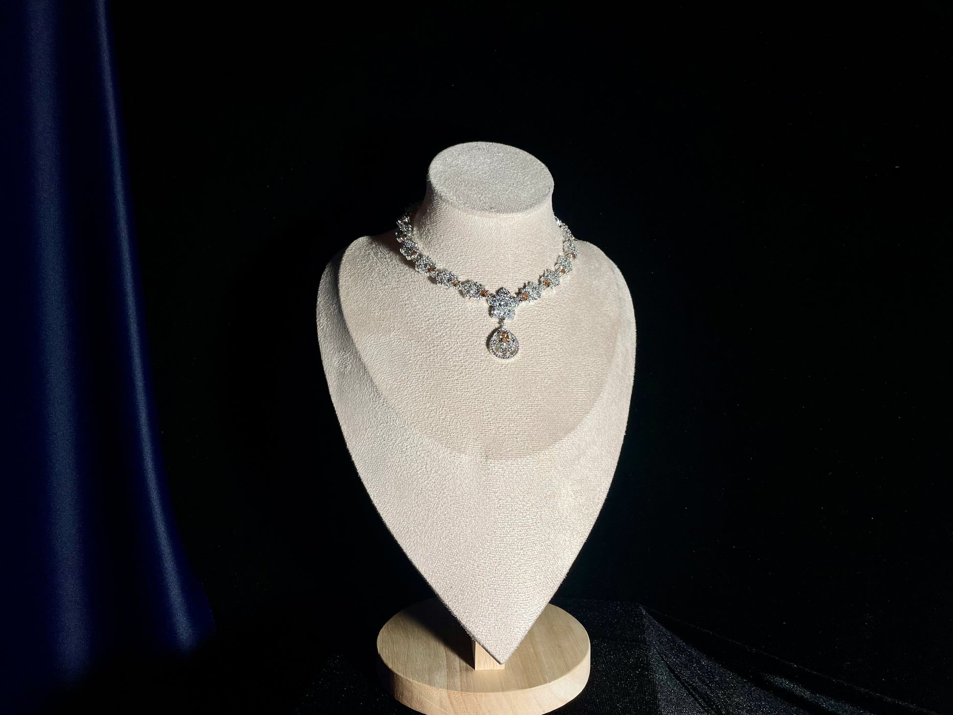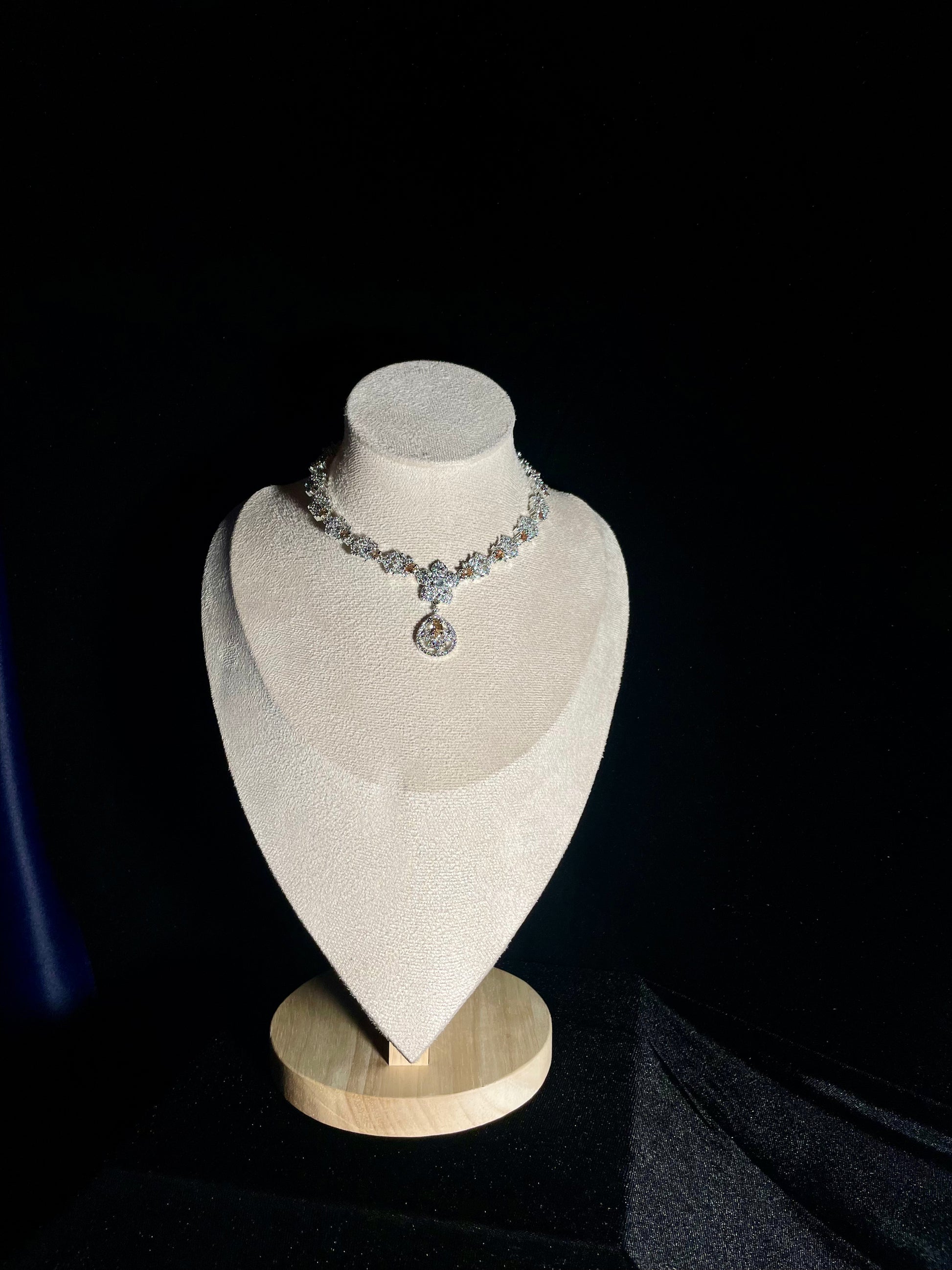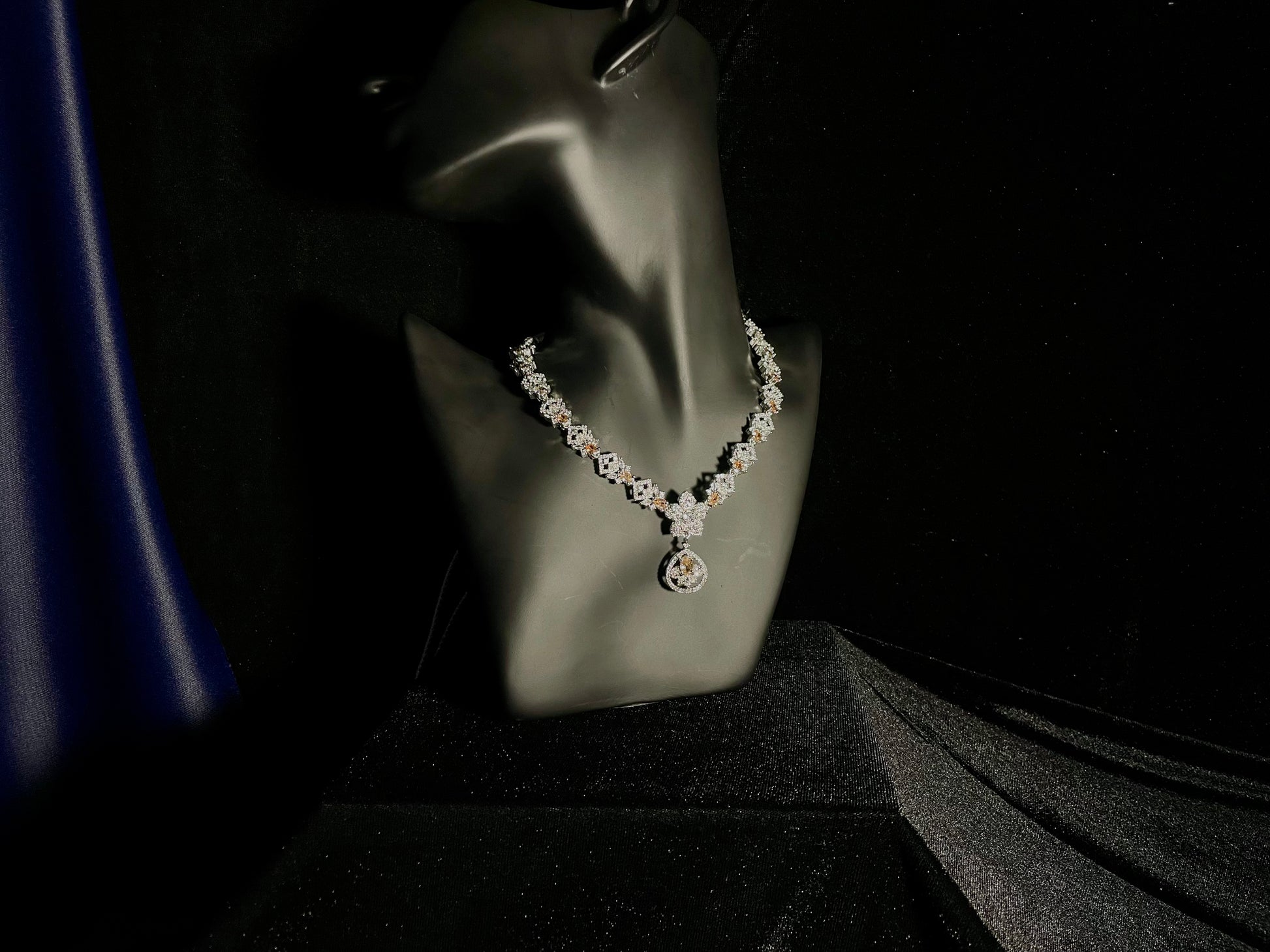 Elevate your style with our exquisite Naqsh-e-gul collection. This sophisticated set features delicate champagne-colored stones perfectly complemented by brilliant zircon diamonds. The intricate detailing captures timeless elegance while the warm champagne hues flatter every skin tone. Make a statement that whispers luxury and commands attention wherever you go.