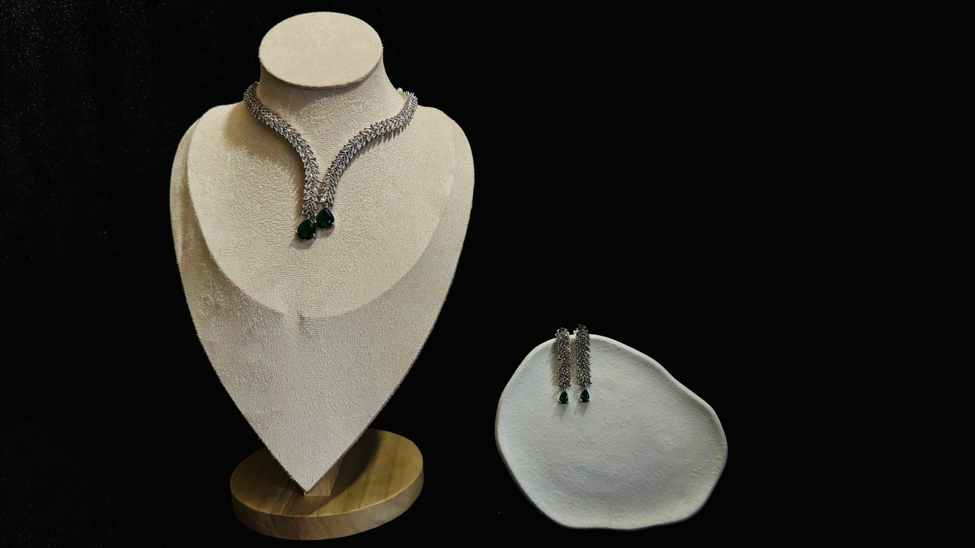 Elevate your style with the exquisite Maryam set, a stunning combination of vibrant green stones and dazzling zircon diamonds. This elegant modern collection adds a touch of sophistication to any outfit, making it perfect for special occasions or adding luxury to everyday wear. The timeless design ensures you'll treasure this remarkable set for years to come.