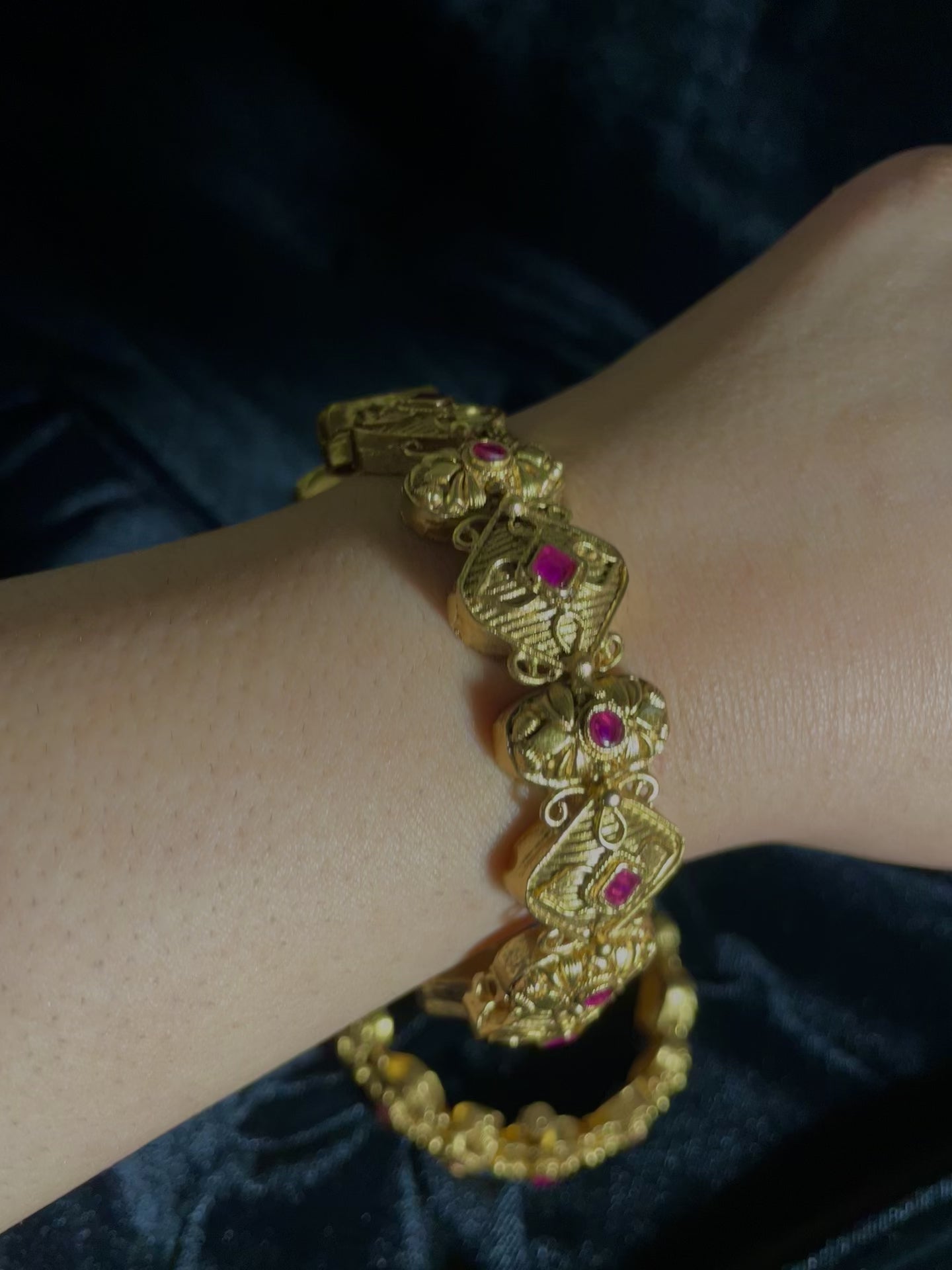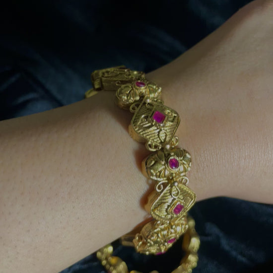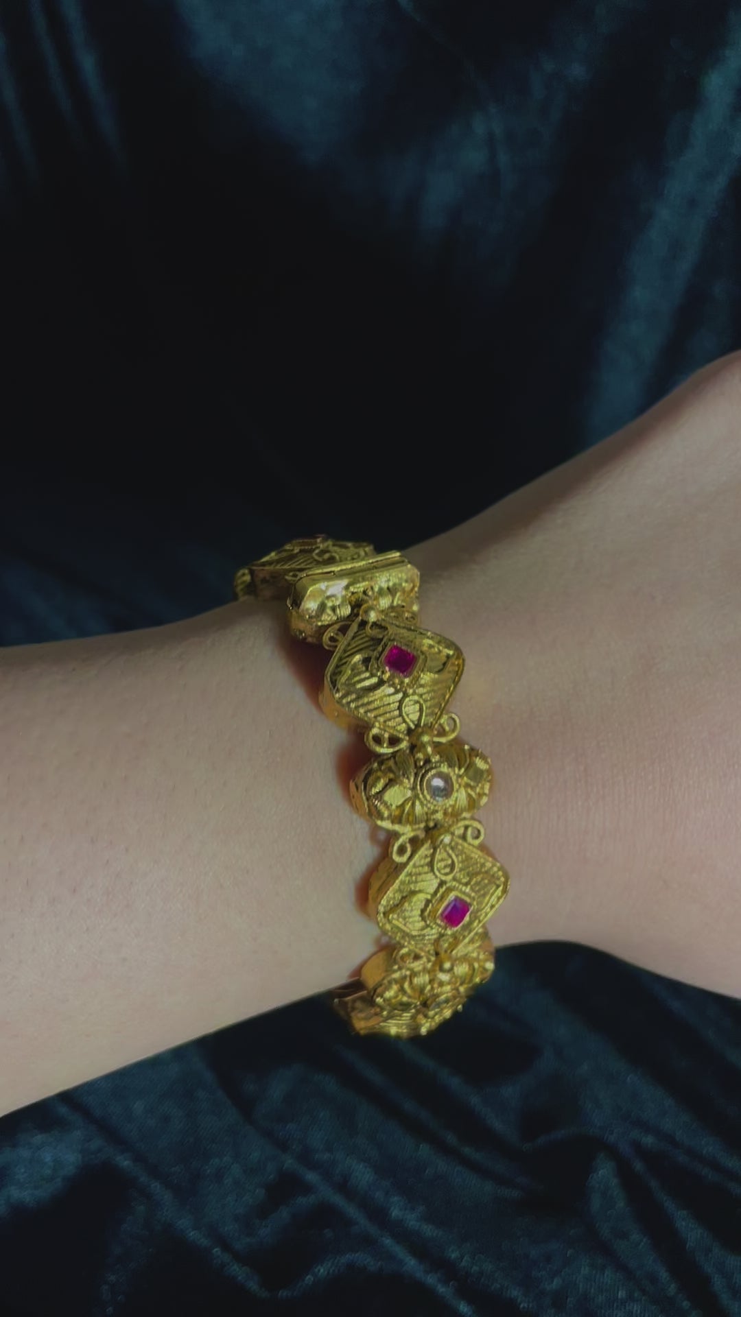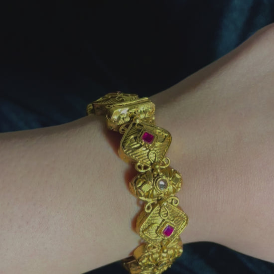 Expertly crafted Raheela Bangles available in two styles, featuring chunky traditional designs. These substantial pieces showcase authentic artisanship with bold proportions and classic motifs, perfect for making a statement while honoring traditional jewelry aesthetics.