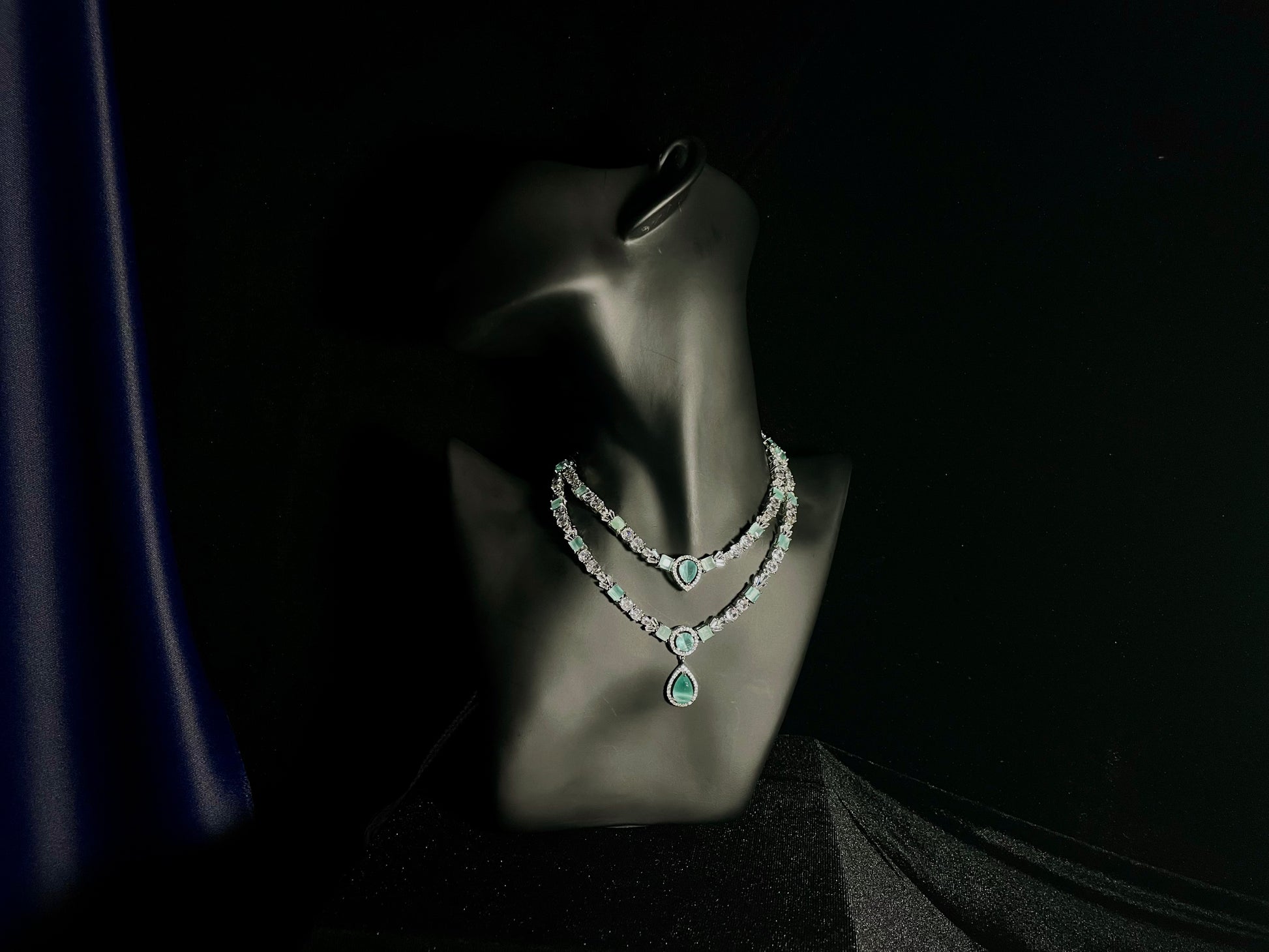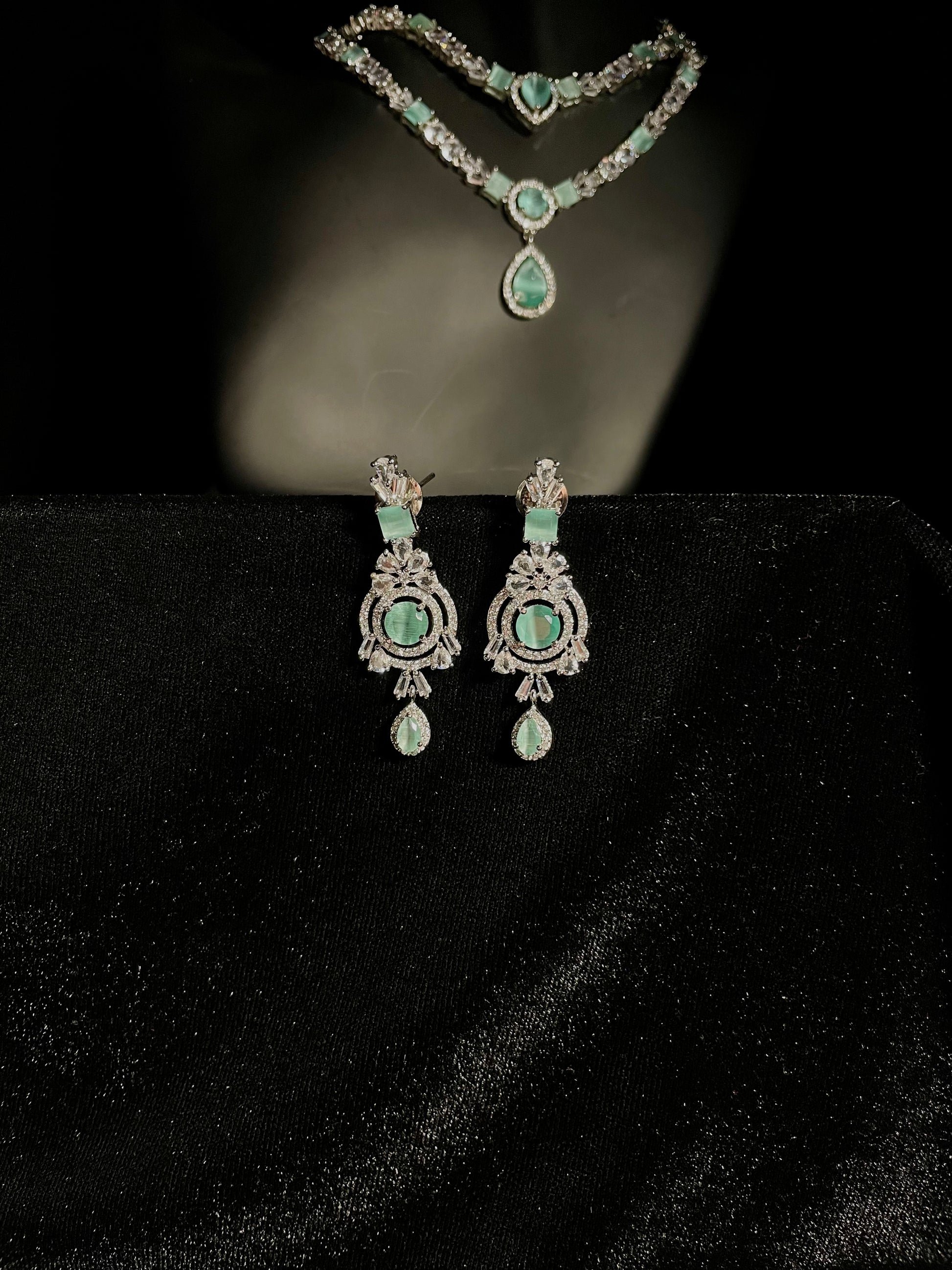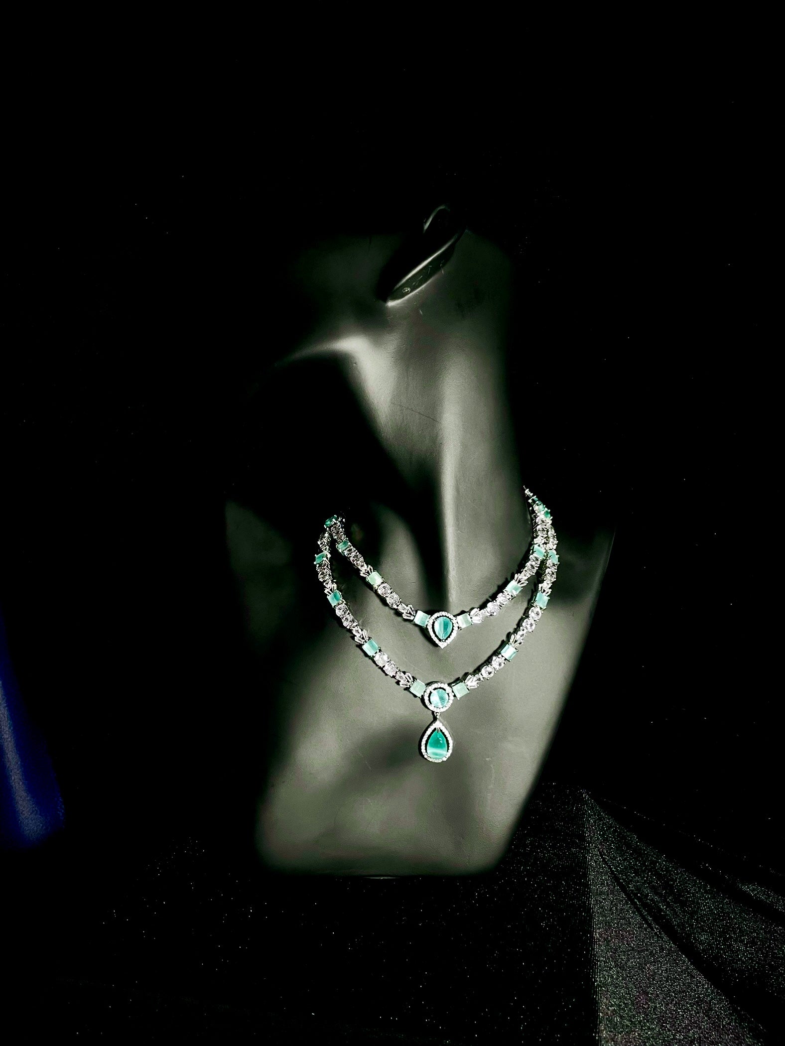 Elevate your style with our stunning Shabnaam Set, featuring a luxurious layered necklace adorned with vibrant turquoise stones and sparkling zircon diamonds. This eye-catching ensemble includes perfectly matched dainty earrings that exude elegance. Transform any outfit from ordinary to extraordinary with this must-have jewelry set that's designed to turn heads and capture compliments.