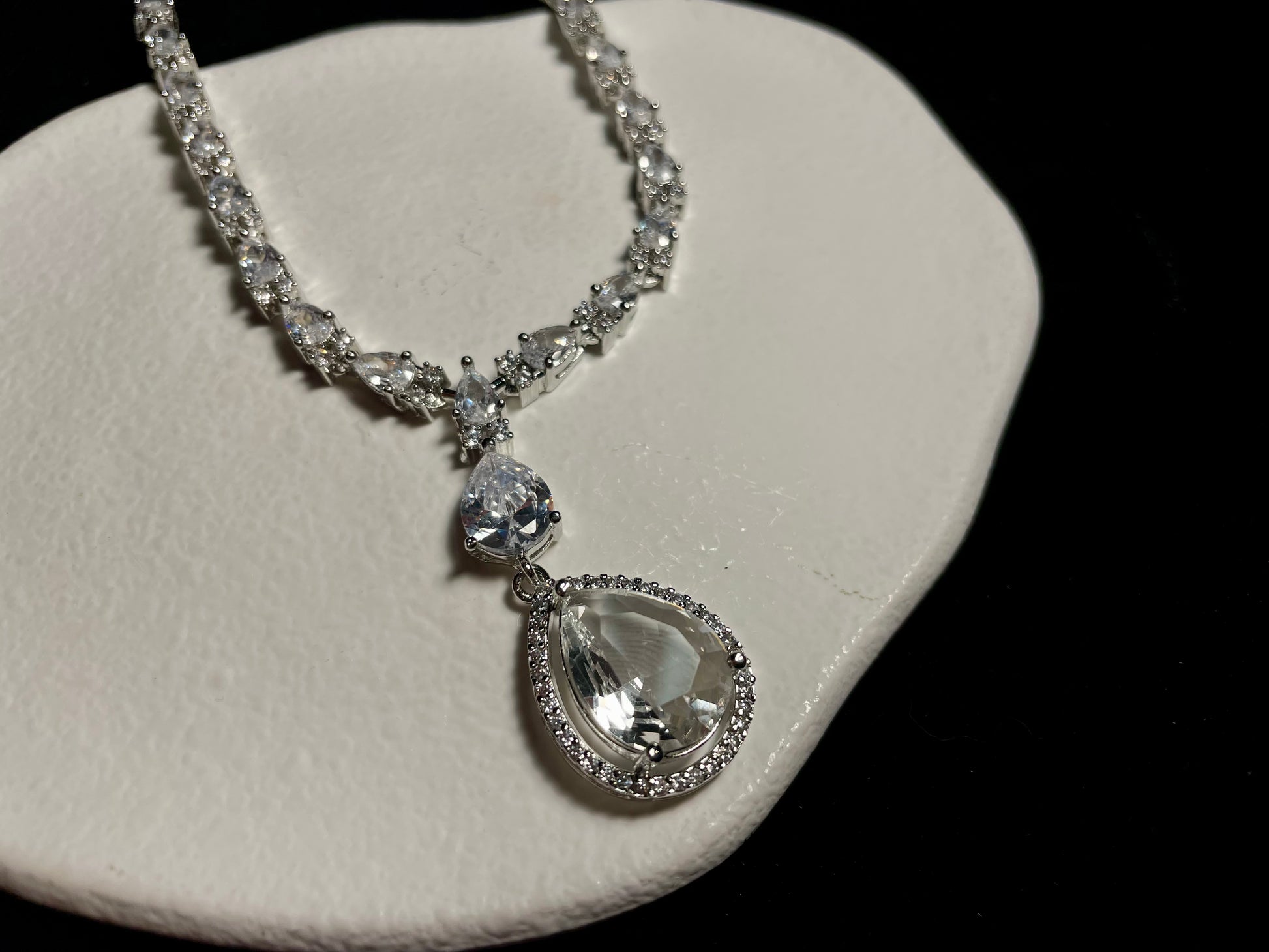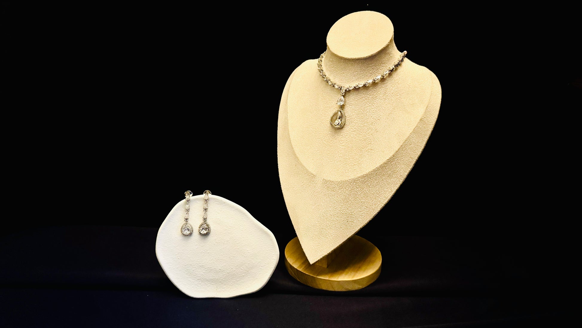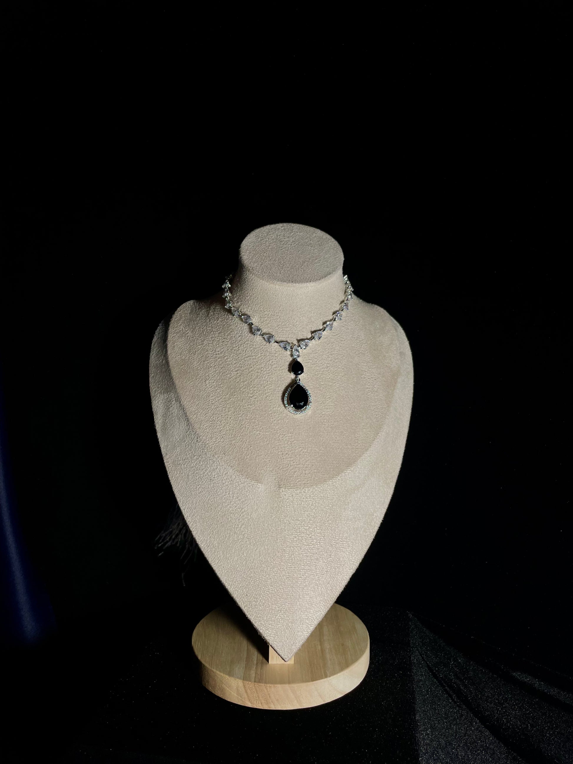 This set includes earrings that are approximately 2" in length and a necklace.