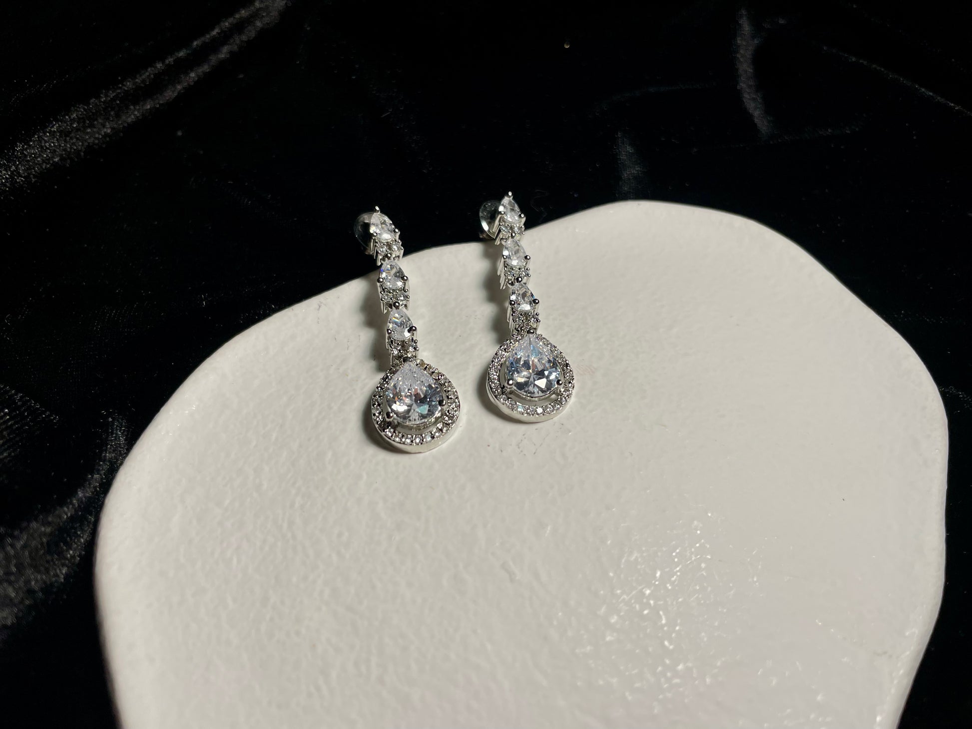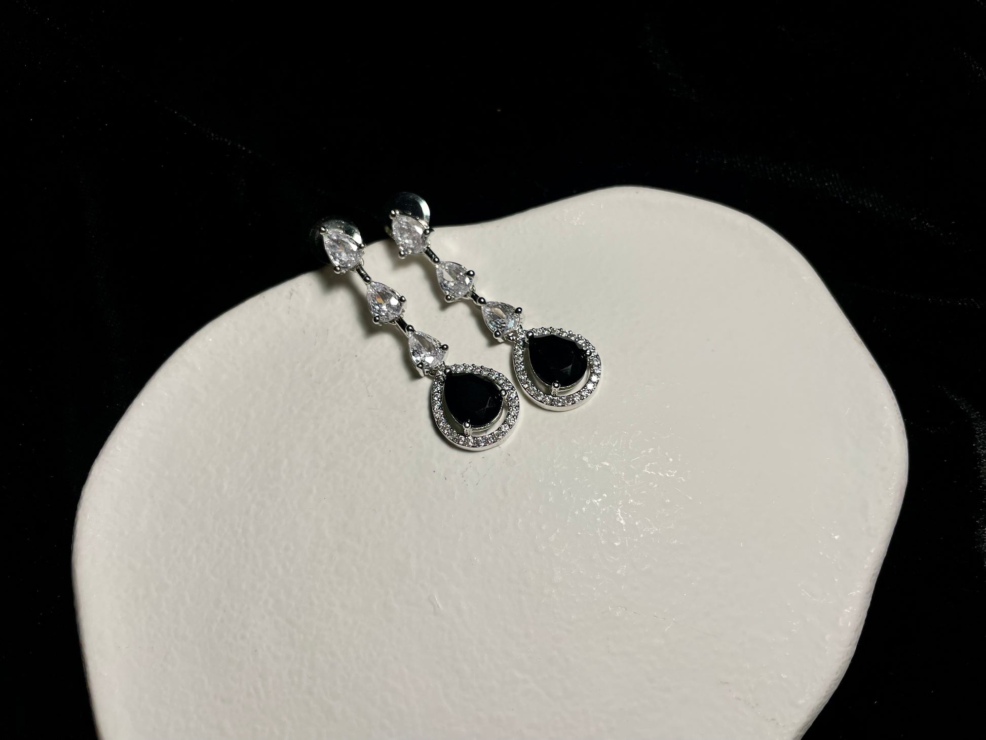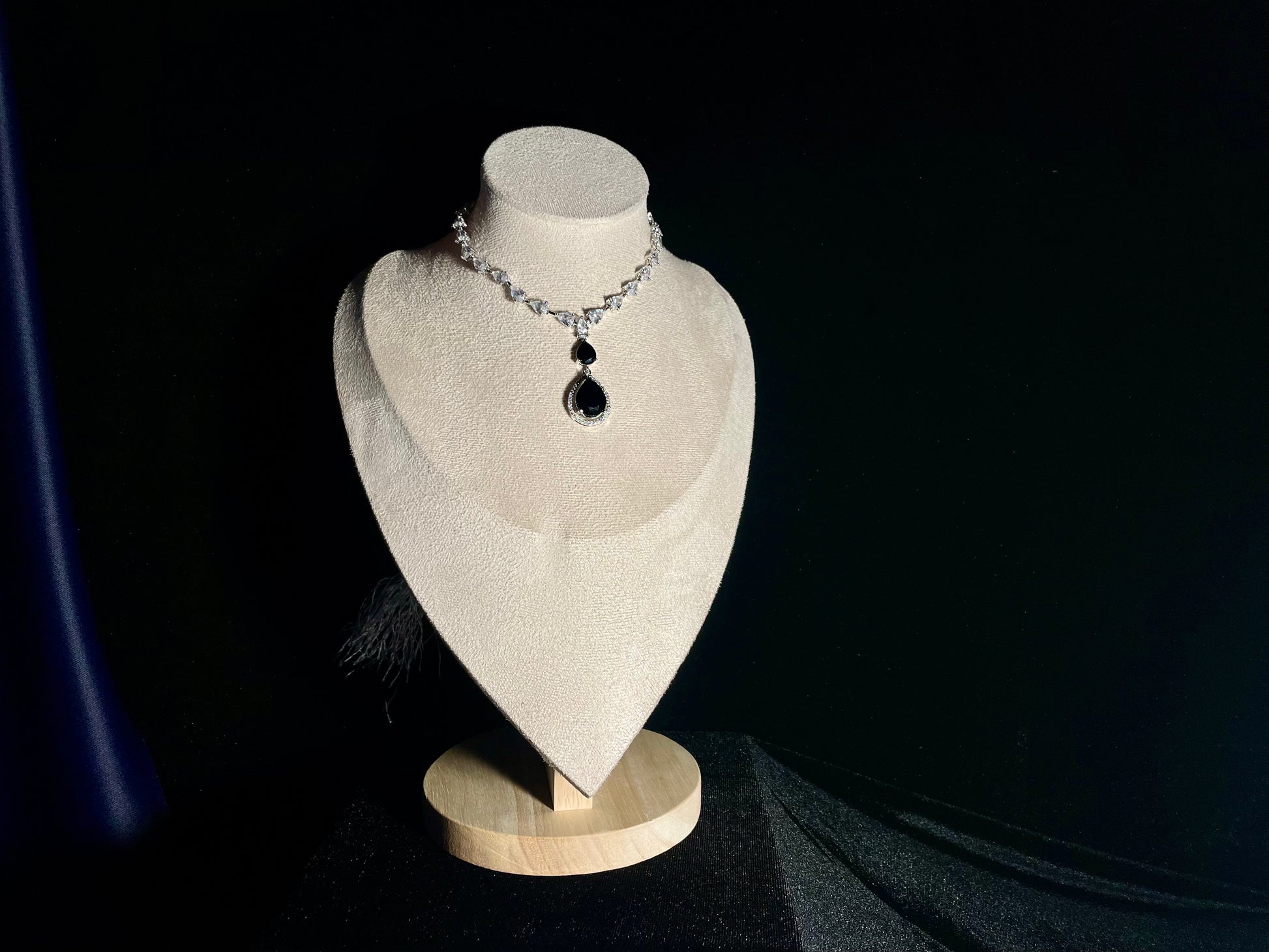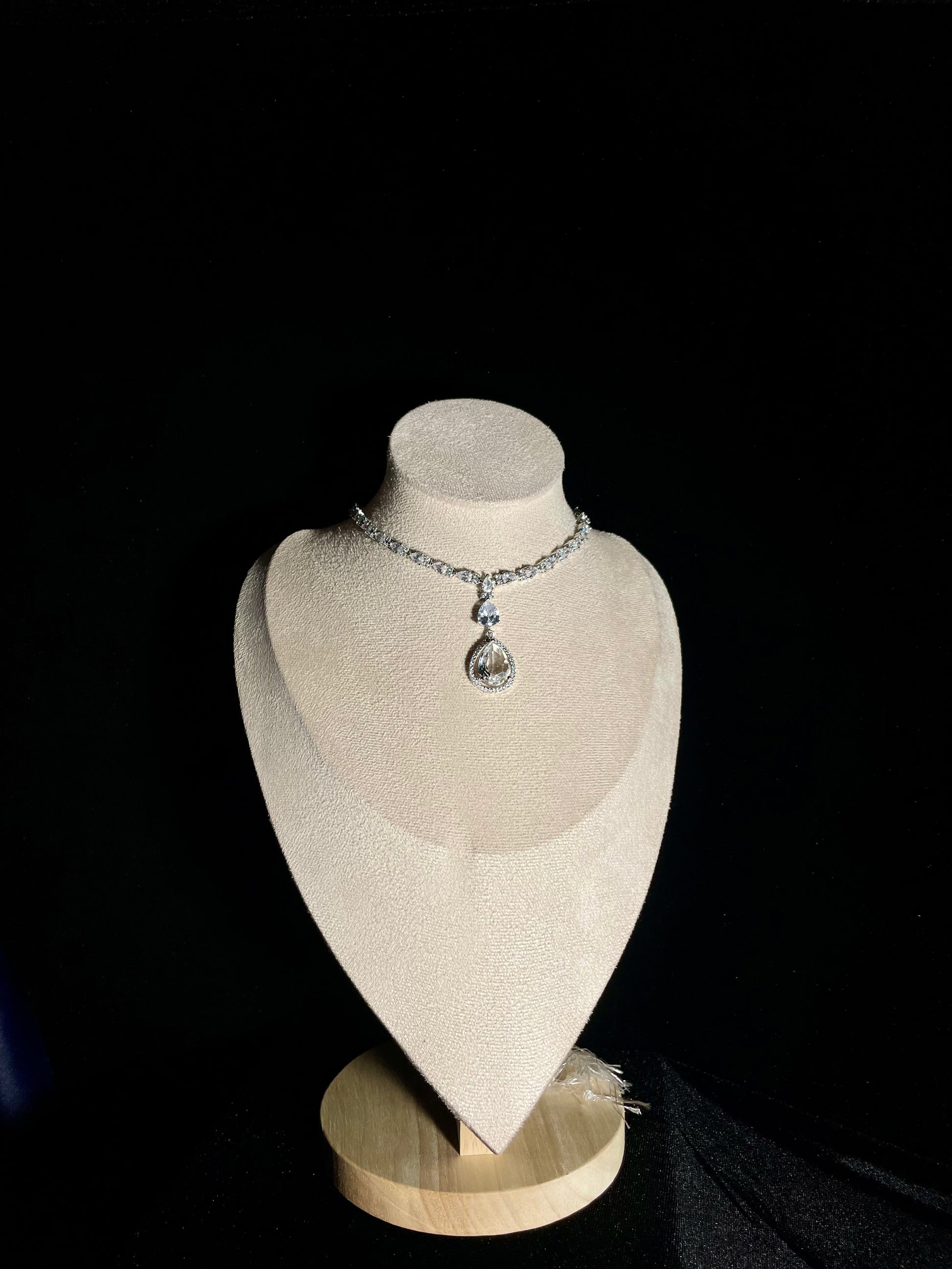 This set includes earrings that are approximately 2" in length and a necklace.