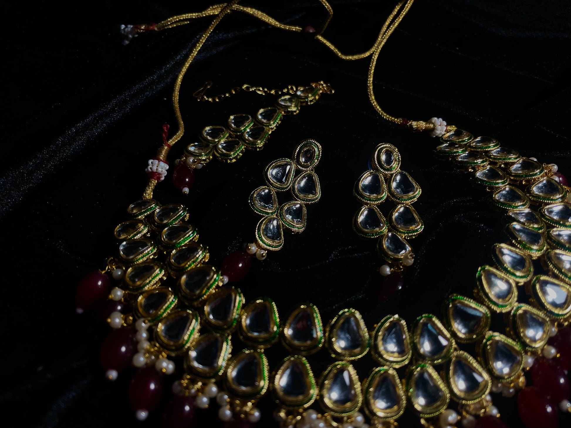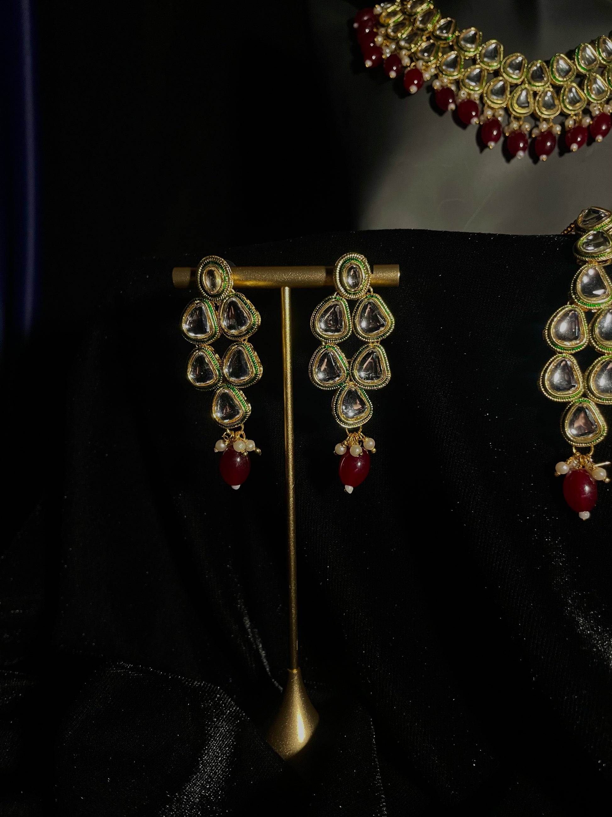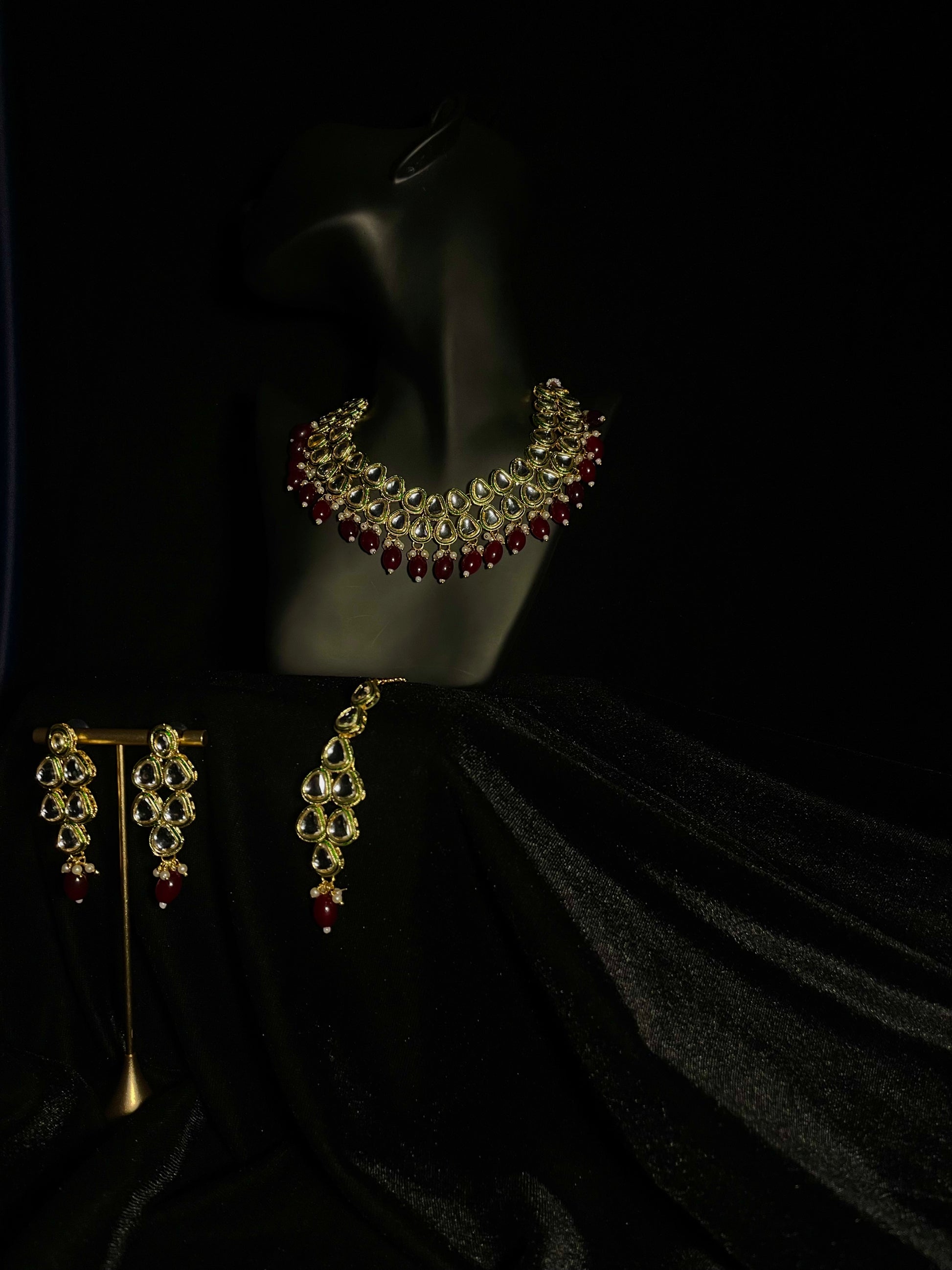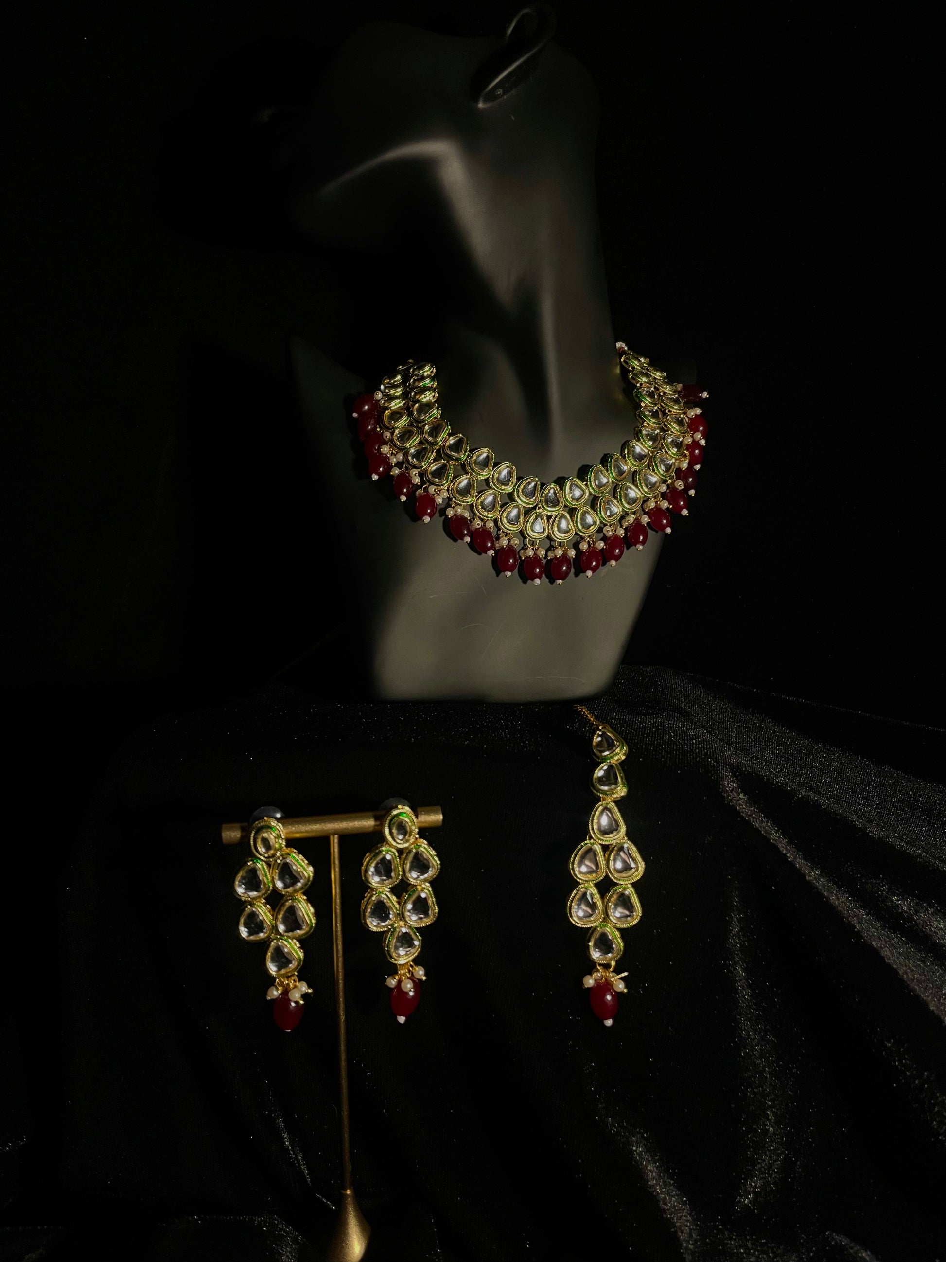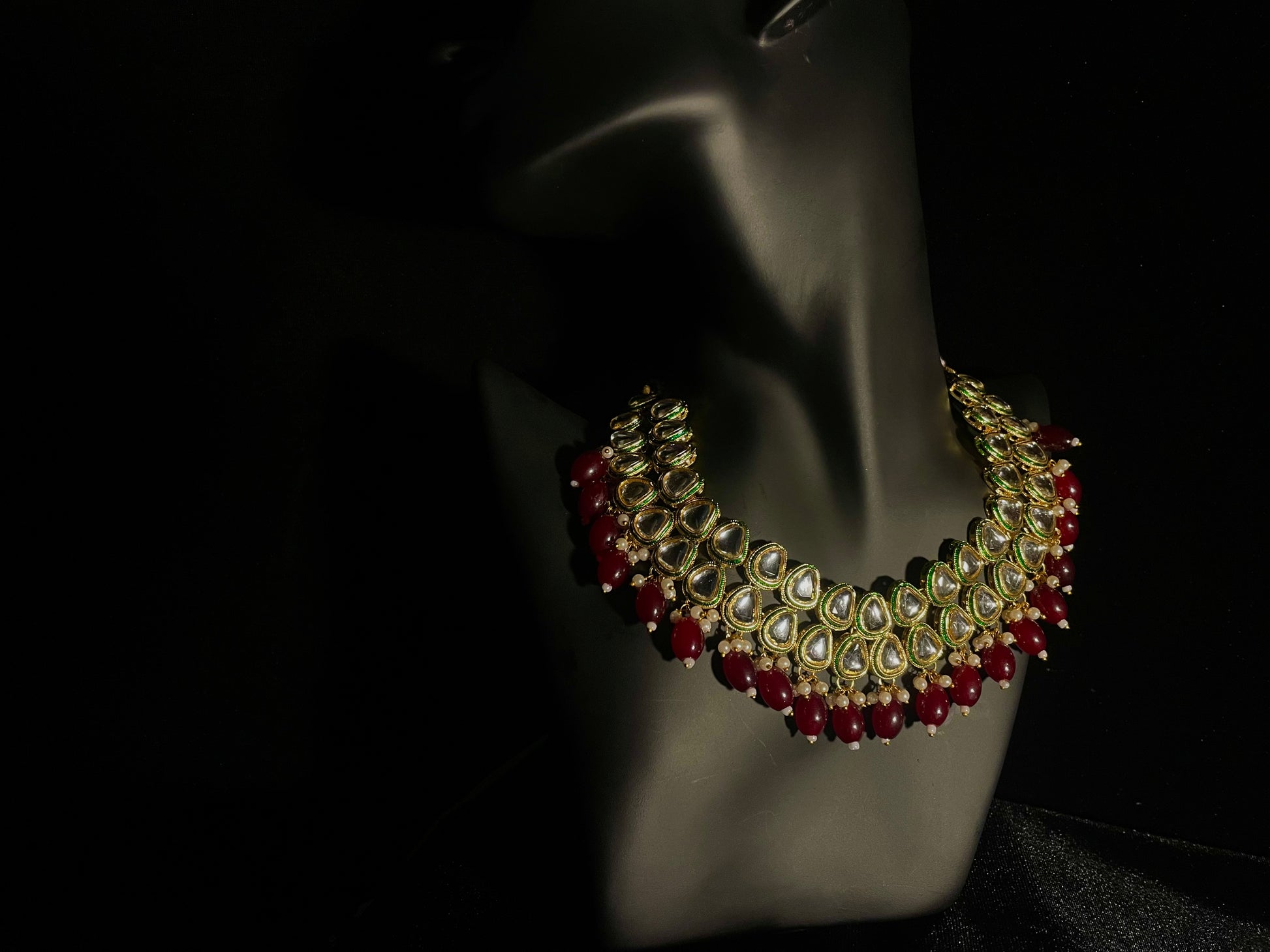 Elevate your style with our stunning Zewar-e-shahi ll set, featuring vibrant red beads that command attention. This simplified yet sophisticated version of our classic design showcases elegant glass inlays that catch the light with every movement. The perfect statement piece to transform any outfit from ordinary to extraordinary – a true reflection of royal heritage with contemporary appeal.